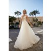 Váš deň sa blíži a čaká Vás najdôležitejší výber svadobných šiat. My Vám môžeme ponúknuť tenro krásny kúsok z dielne Libelle bridal, ktorý Vám prinášame vo farbe ivory a vo veľkosti 42. Tieto nádherne zdobené šaty majú nádhernú trblietavú sukňu. Trblietky vyzerajú veľmi decentne a šatky vďaka nim krásne žiaria. Vrchný diel je ladený do striebornej a je prešívaný romantickou krajkou, ktorá sa veľmi efektne dosahuje aj na sukňu. Výstrih je do tvaru V s tylom. Šaty sú na hrubšie ramienka.
