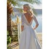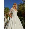 Model Nancy z dielne Modeca je príjemná kombinácia elegantnej hladkej sukne a krajkového vrchu. Šaty majú farbu ivory. Sukňa modelu Nancy je z mikáda, široká so skladmi. Ako bonus na sukni sú aj vačky, do ktorých si môžete odložiť napríklad servítku. Ako sme už spomenuli, vrchný diel je krajkový s trojštvrťovým rukávom. Páči sa Vám takáto kombinácia?