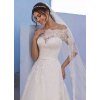 Niekedy nie je na škodu veci staviť na istotu a vybrať niečo klasické. Tieto krásne šaty z dielne WHITE ONE sú čerešničkou na torte v klasických svadobných šatách. Presne taký model s ktorým zažiarite. Tentokrát vravíme aj o čisto bielej farbe šatičiek. U nás salóne ich pre Vás máme vo veľkosti 38. Šaty majú krásnu tylovú sukňu s našitou kvetovou krajkou, ktorá pôsobí v skutku romanticky. Vrchný diel má lodičkový tvar, takže krásne môžete odhaliť ramená. Taktiež tieto šatky majú 3/4 rukáv, ktorý je celý krajkový. Uspokojte týmto modelom svoje oči aj dušu.